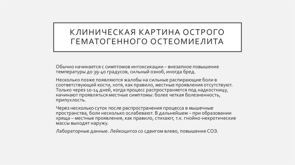 КЛИНИЧЕСКАЯ КАРТИНАГЕМАТОГЕННОГО ОСТЕОМИЕЛИТА