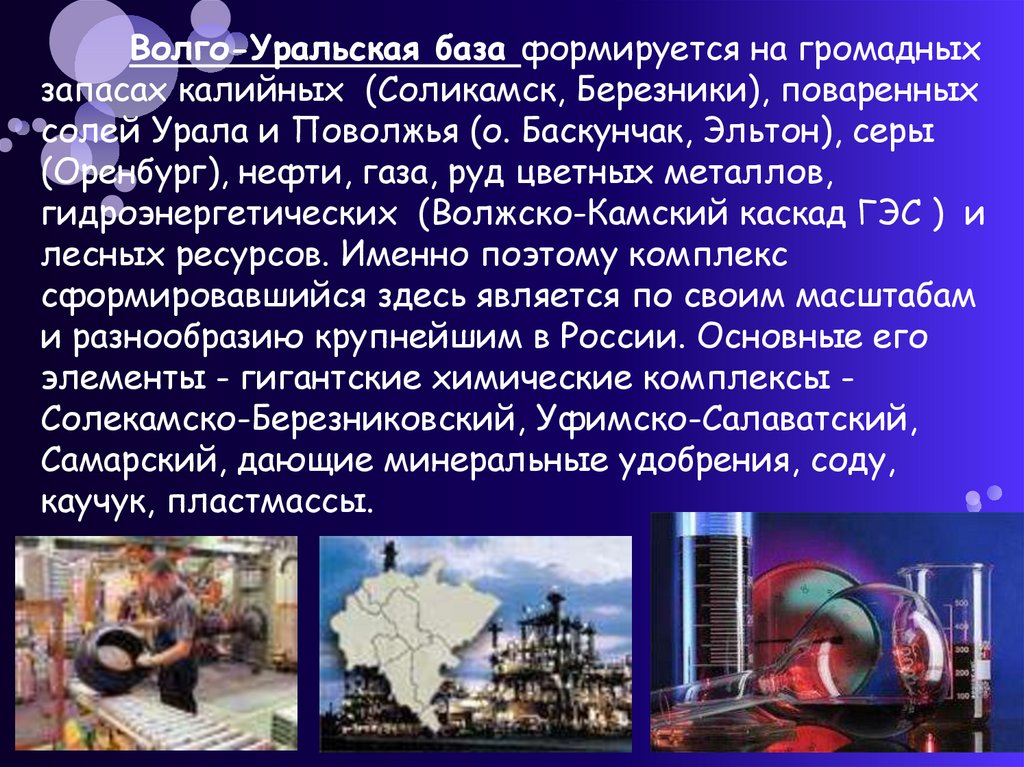 Волго-Уральская база формируется на громадныхзапасах калийных (Соликамск, Березники), поваренных