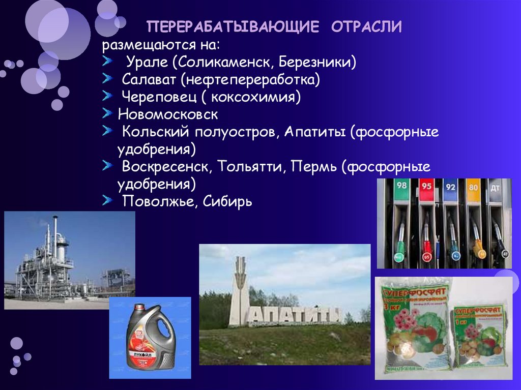 ПЕРЕРАБАТЫВАЮЩИЕ ОТРАСЛИразмещаются на: