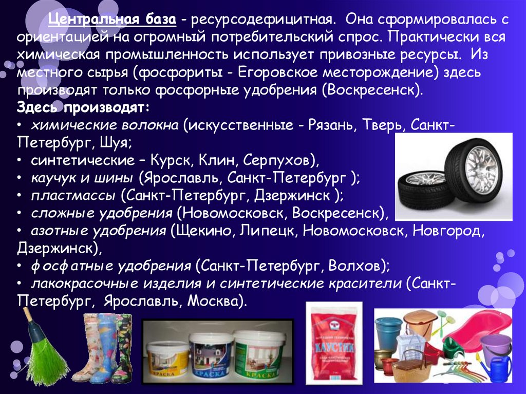 Центральная база - ресурсодефицитная. Она сформировалась сориентацией на огромный потребительский спрос. Практически вся