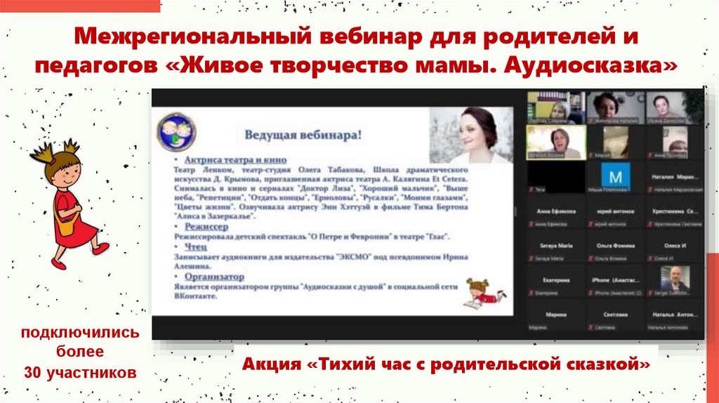 Межрегиональный вебинар для родителей ипедагогов «Живое творчество мамы. Аудиосказка»