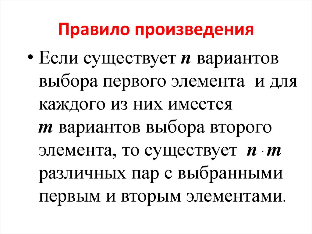 Правило произведения• Если существует n вариантов