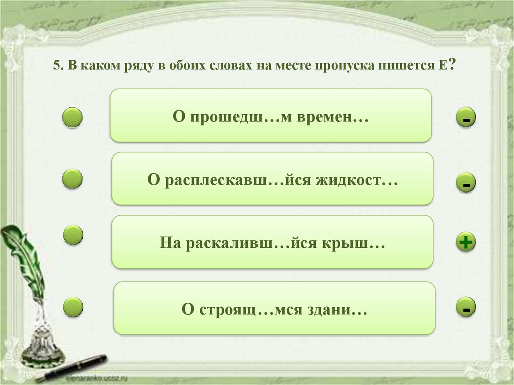 5. В каком ряду в обоих словах на месте пропуска пишется Е?О прошедш…м времен…
