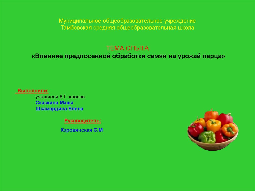 ТЕМА ОПЫТА«Влияние предпосевной обработки семян на урожай перца»