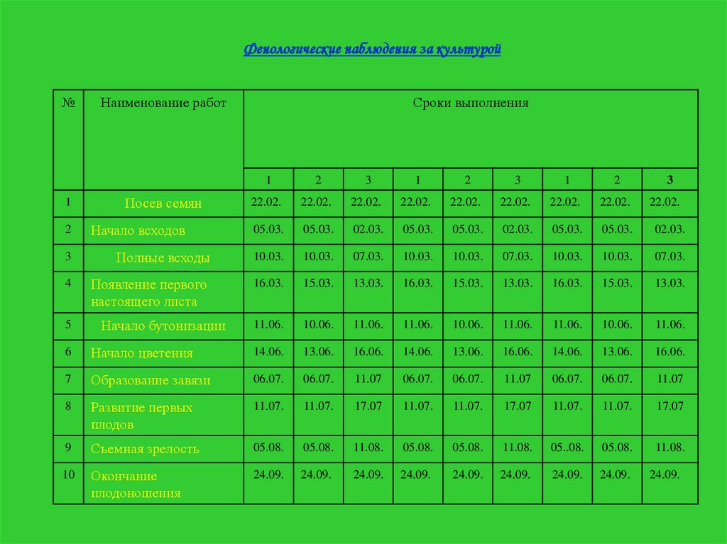 Фенологические наблюдения за культурой№
