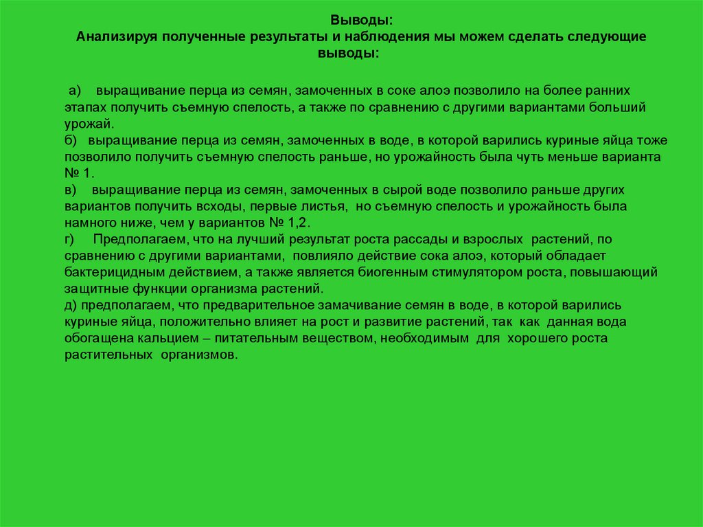 а) выращивание перца из семян, замоченных в соке алоэ позволило на более ранних