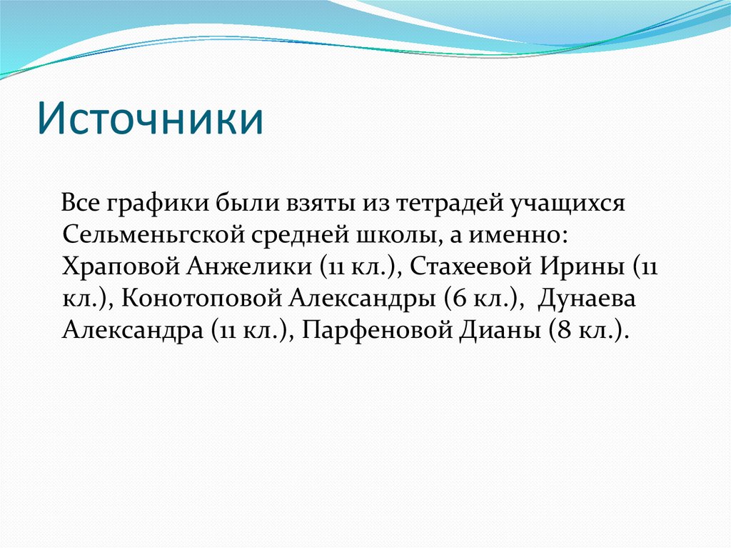 ИсточникиВсе графики были взяты из тетрадей учащихся