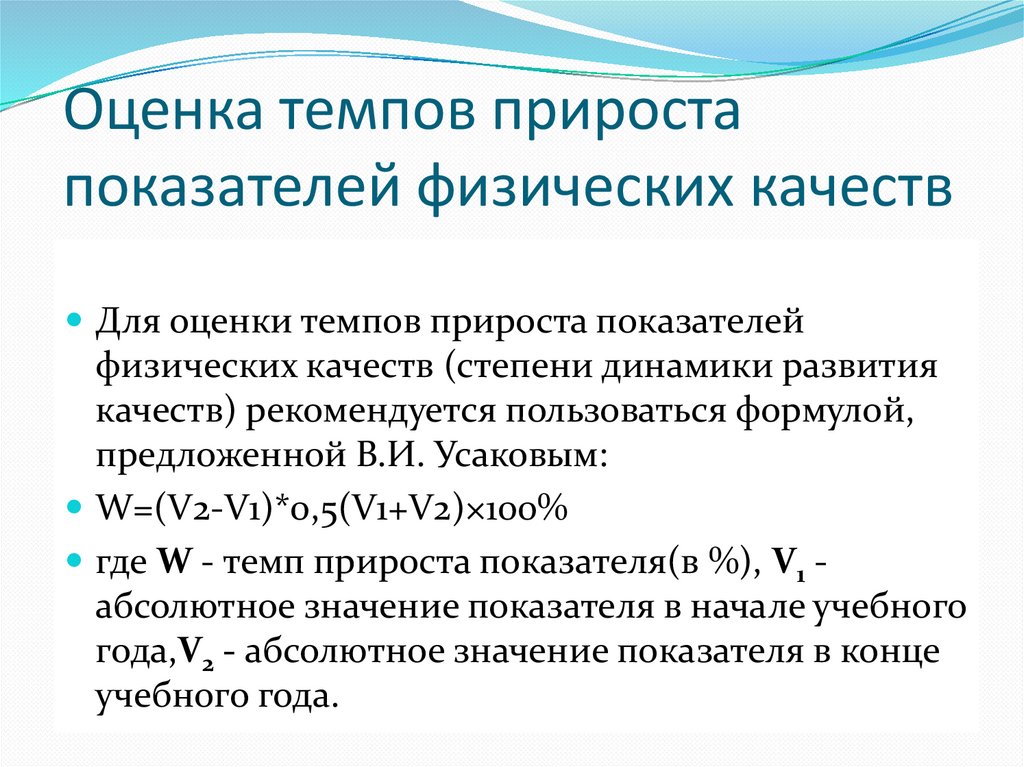 где W - темп прироста показателя(в %), V1 абсолютное значение показателя в начале учебного