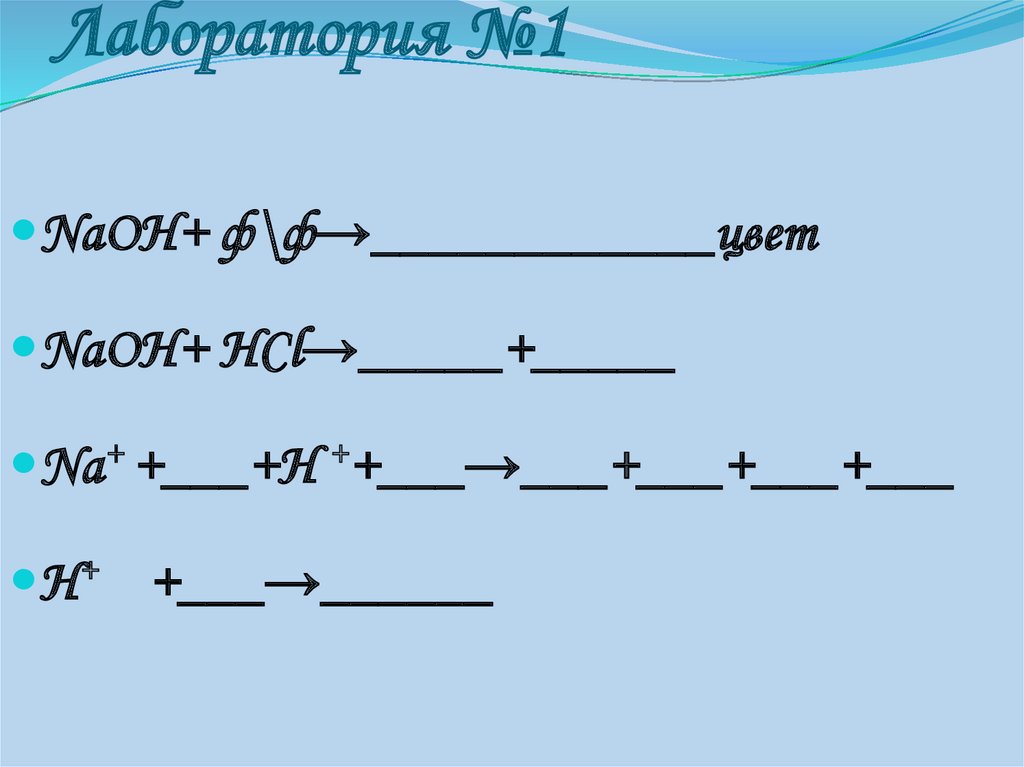 Лаборатория №1NaOH+ ф\ф→____________цвет