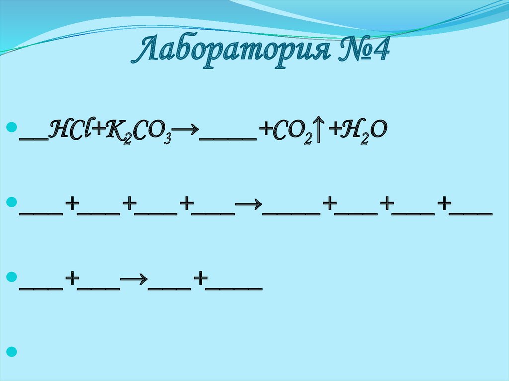 Лаборатория №4__HCl+K2CO3→____+CO2↑+H2O