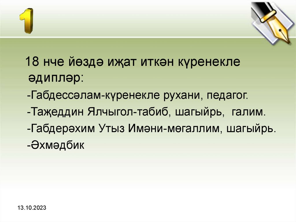 18 нче йөздә иҗат иткән күренеклеәдипләр: