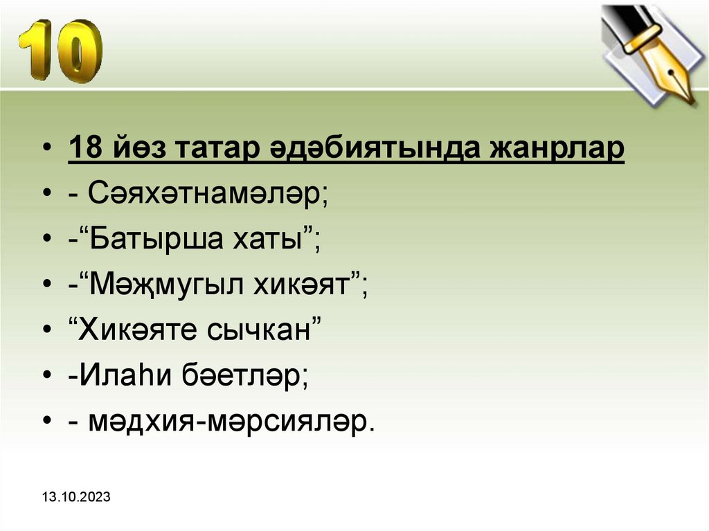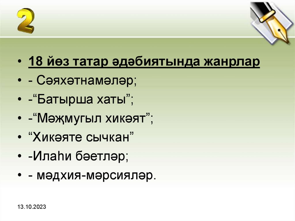 1. 18 нче гасыр татар әдәбиятында жанрлар