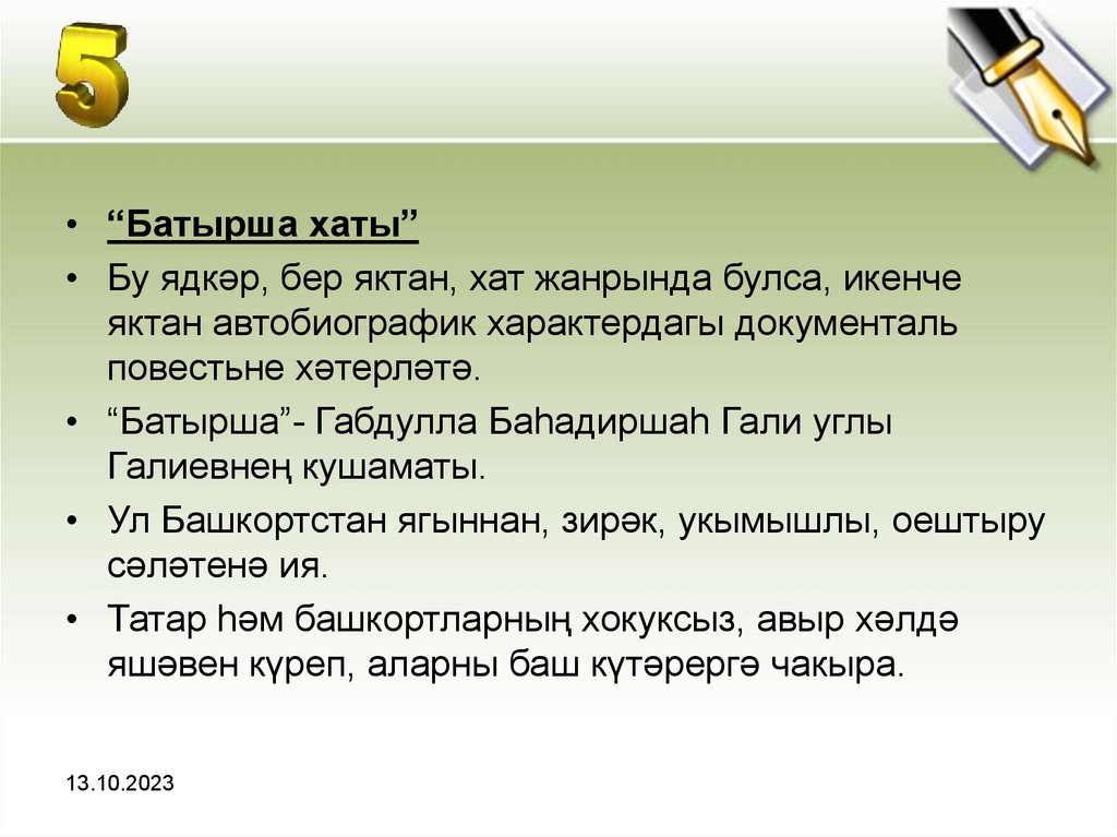 • “Батырша хаты”• Бу ядкәр, бер яктан, хат жанрында булса, икенче