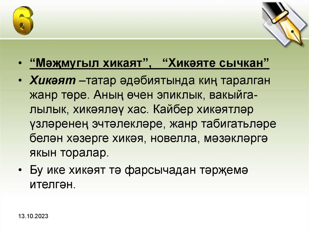 • “Мәҗмугыл хикаят”, “Хикәяте сычкан”• Хикәят –татар әдәбиятында киң таралган