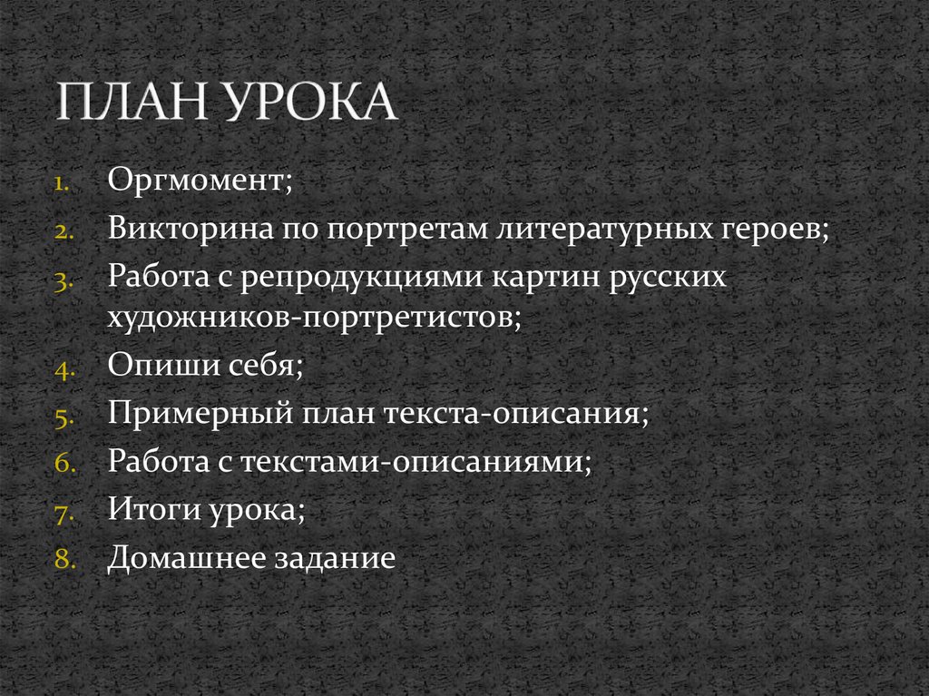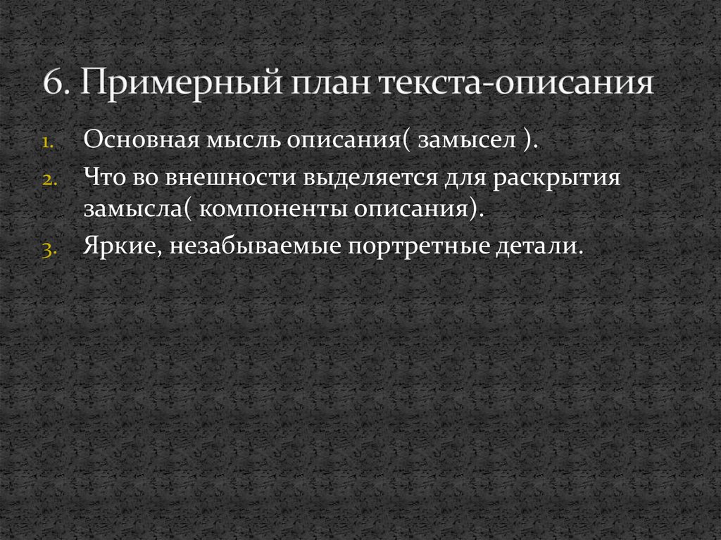 Основная мысль описания( замысел ).2. Что во внешности выделяется для раскрытия