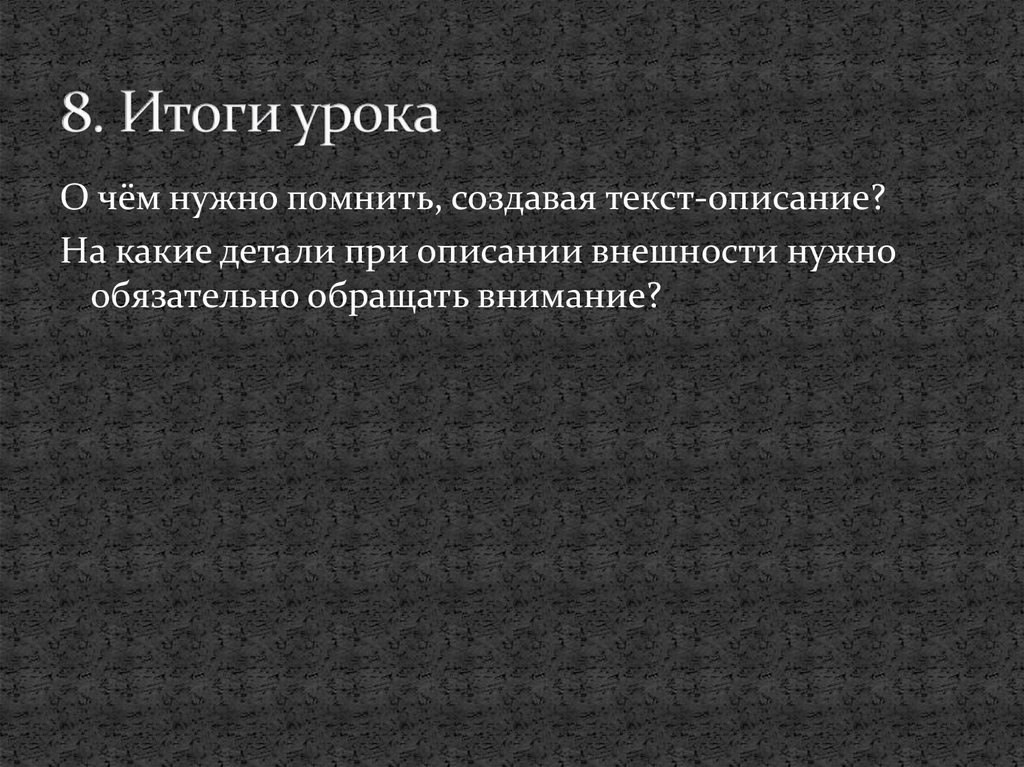 О чём нужно помнить, создавая текст-описание?На какие детали при описании внешности нужно