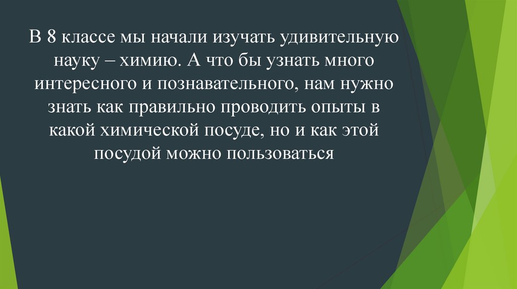 В 8 классе мы начали изучать удивительнуюнауку – химию. А что бы узнать много