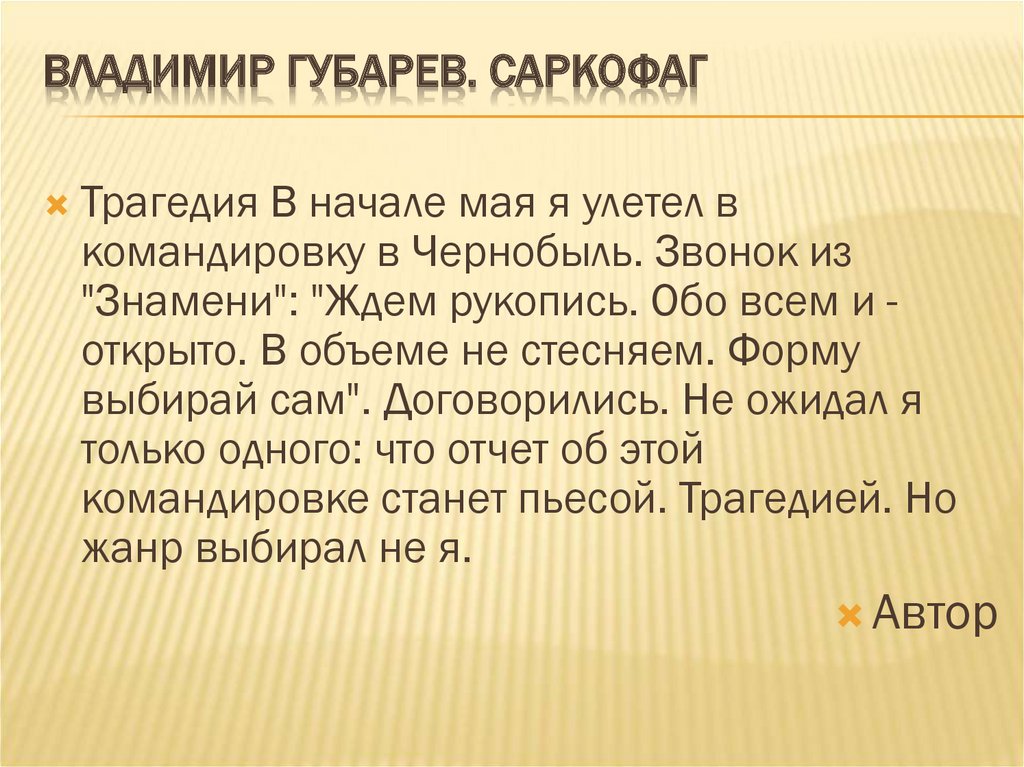 ВЛАДИМИР ГУБАРЕВ. САРКОФАГТрагедия В начале мая я улетел в