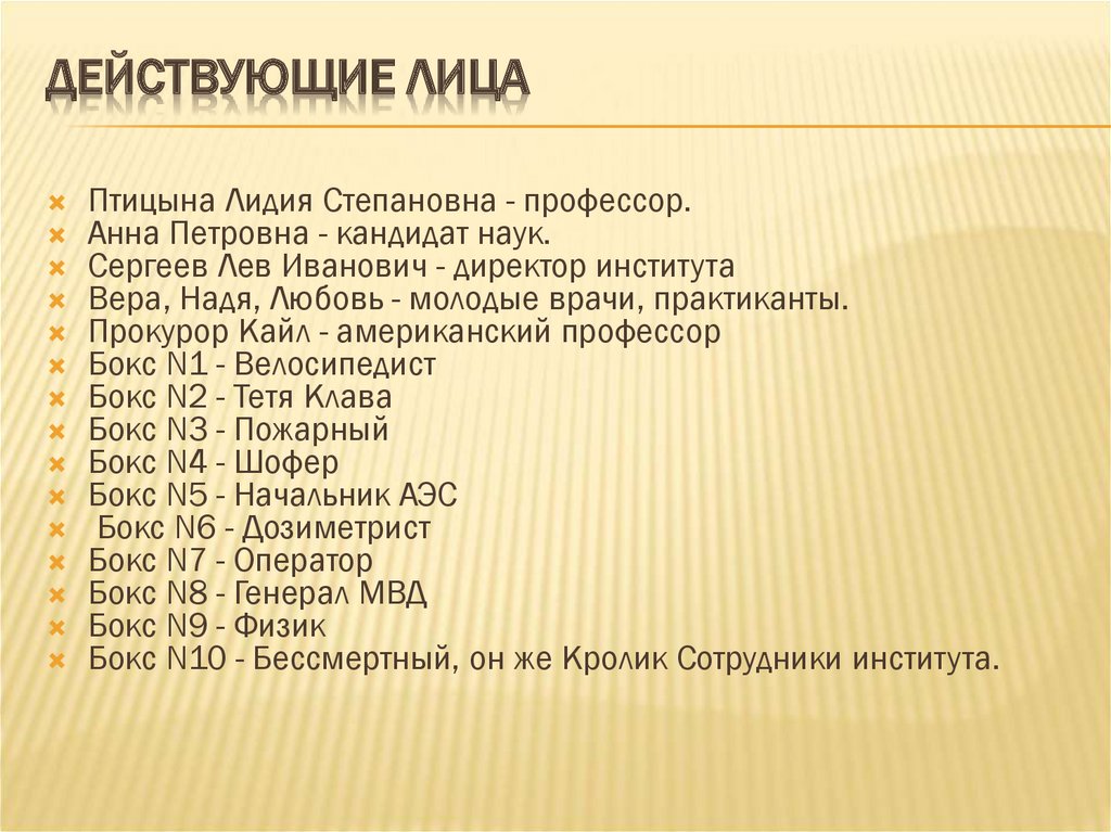 ДЕЙСТВУЮЩИЕ ЛИЦАПтицына Лидия Степановна - профессор.
