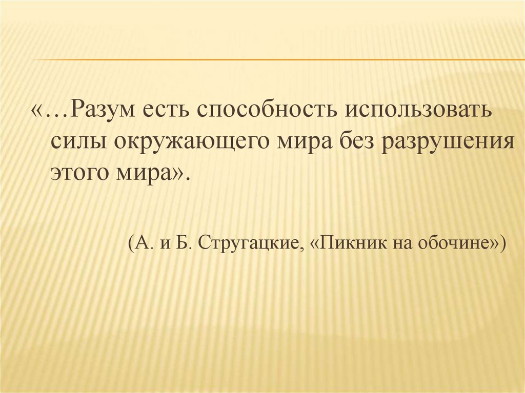 «…Разум есть способность использоватьсилы окружающего мира без разрушения