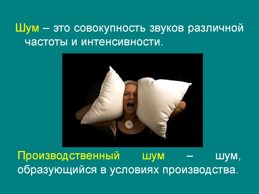 Шум – это совокупность звуков различнойчастоты и интенсивности.
