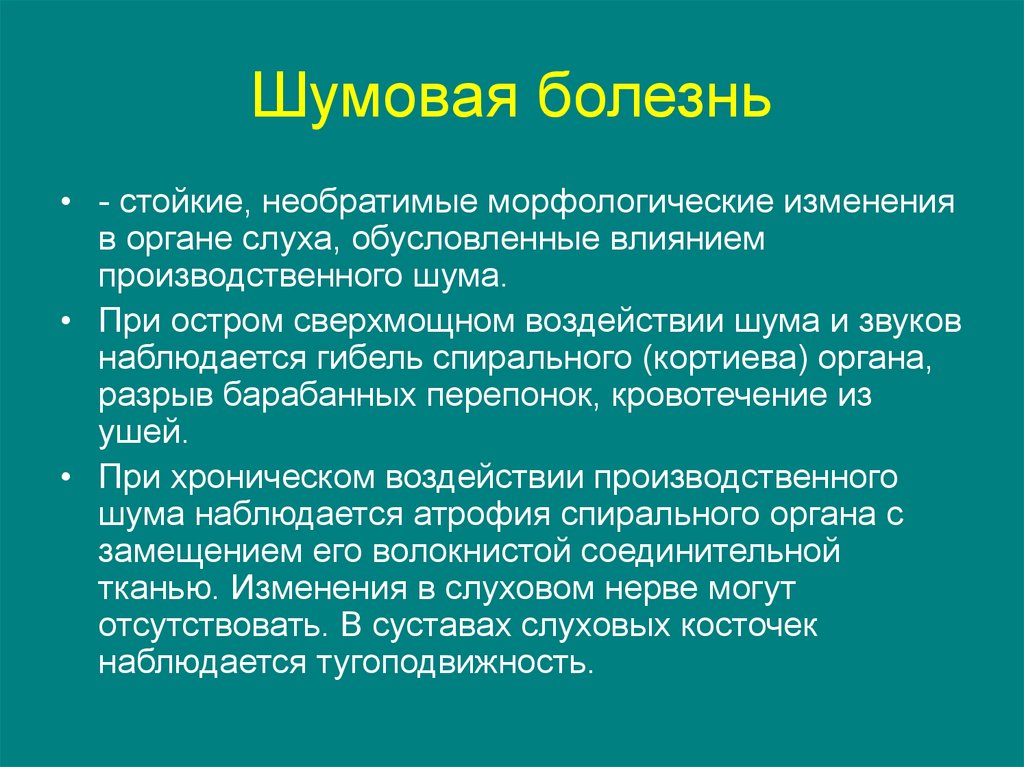 Шумовая болезнь• - стойкие, необратимые морфологические изменения
