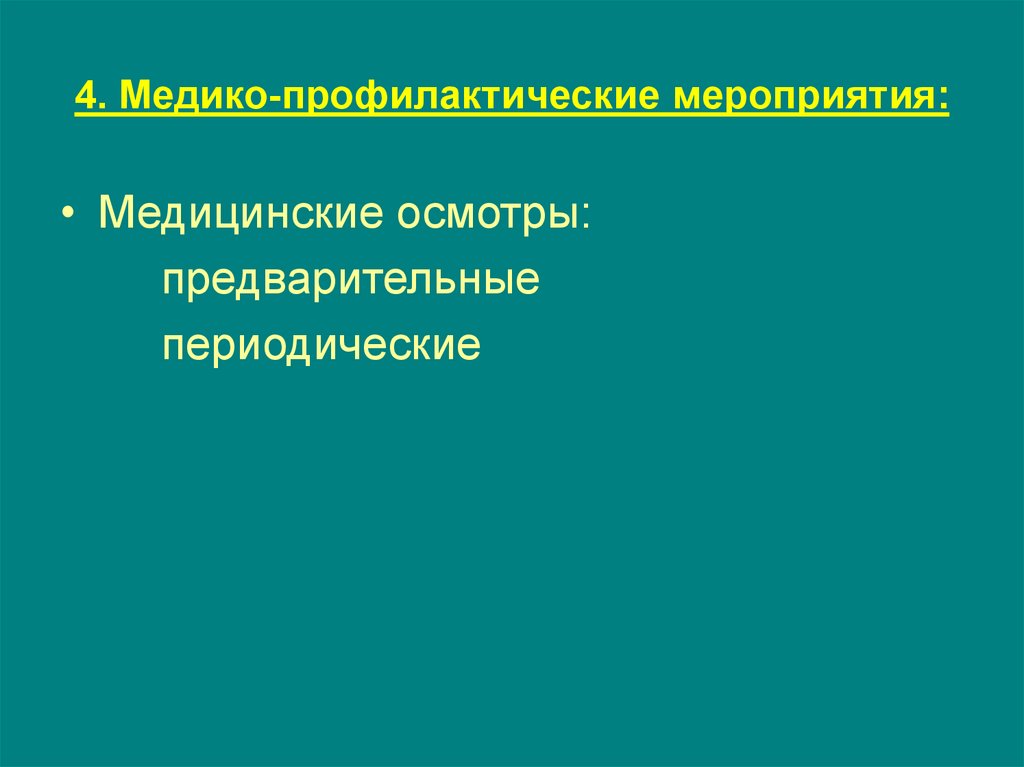 4. Медико-профилактические мероприятия:• Медицинские осмотры: