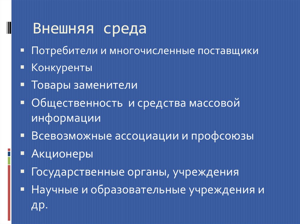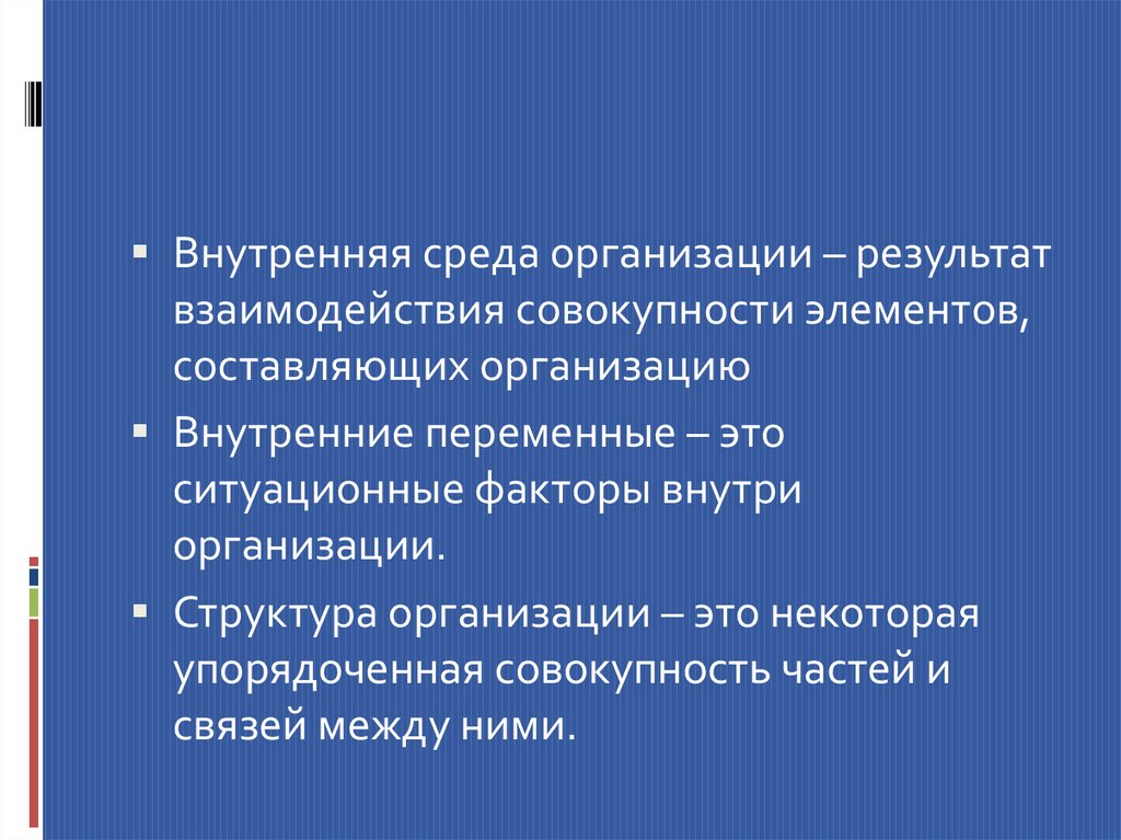 Внутренняя среда организации – результатвзаимодействия совокупности элементов,