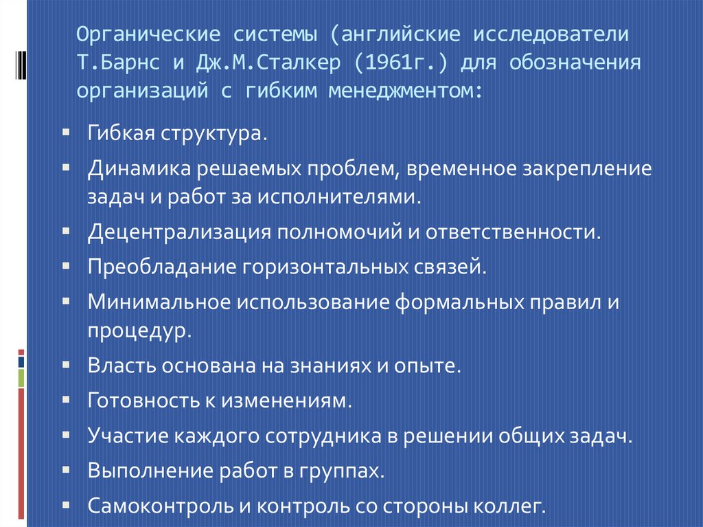 Органические системы (английские исследователиТ.Барнс и Дж.М.Сталкер (1961г.) для обозначения