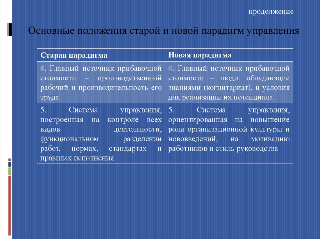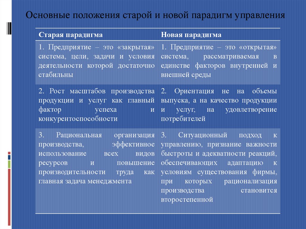 Основные положения старой и новой парадигм управленияСтарая парадигма