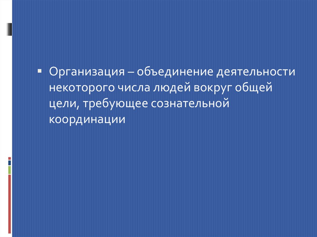 Организация – объединение деятельностинекоторого числа людей вокруг общей