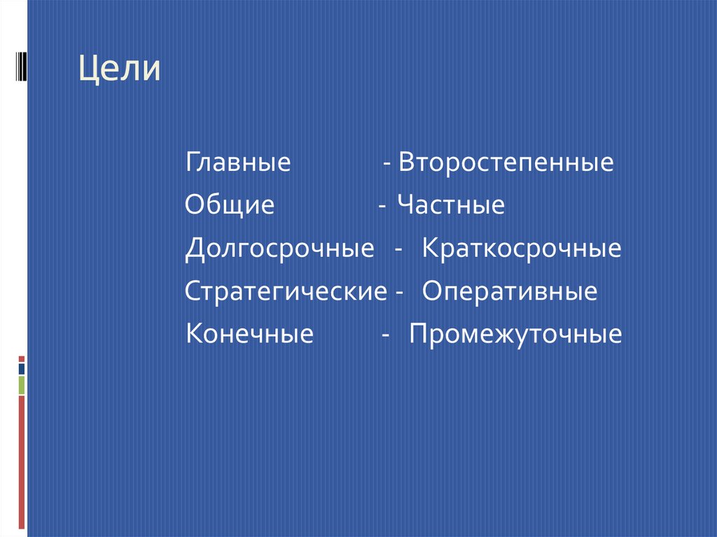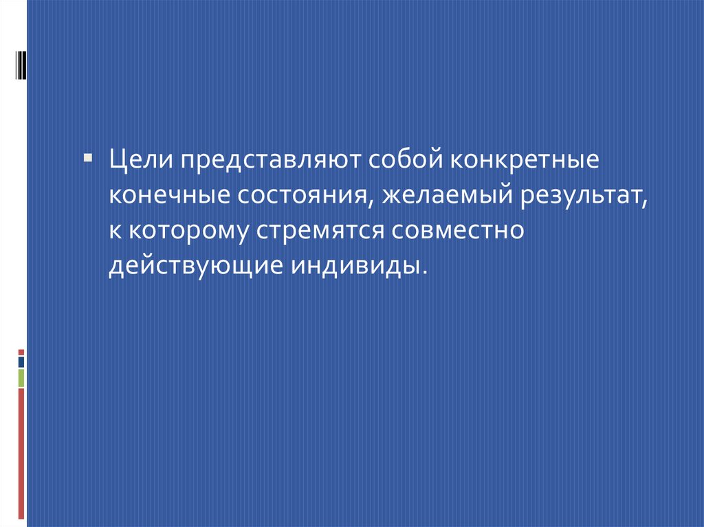 Цели представляют собой конкретныеконечные состояния, желаемый результат,