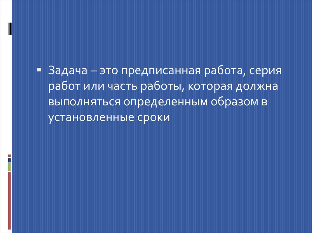 Задача – это предписанная работа, серияработ или часть работы, которая должна