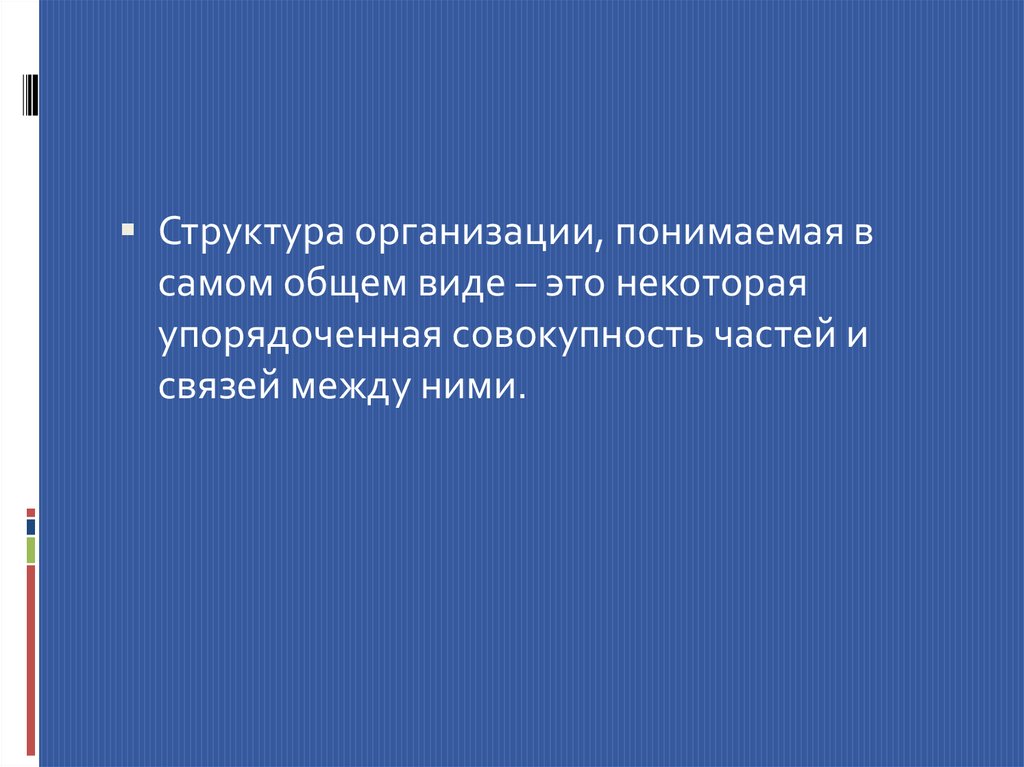 Структура организации, понимаемая всамом общем виде – это некоторая