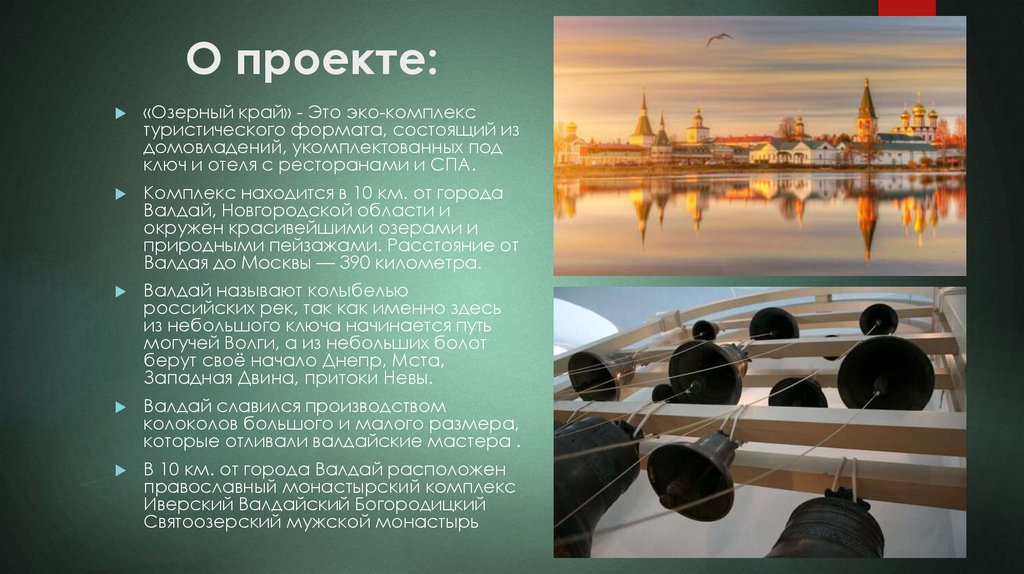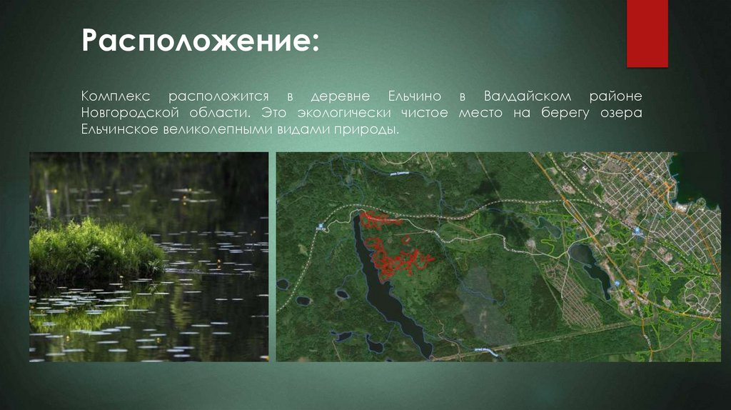 Расположение:Комплекс расположится в деревне Ельчино в Валдайском районе