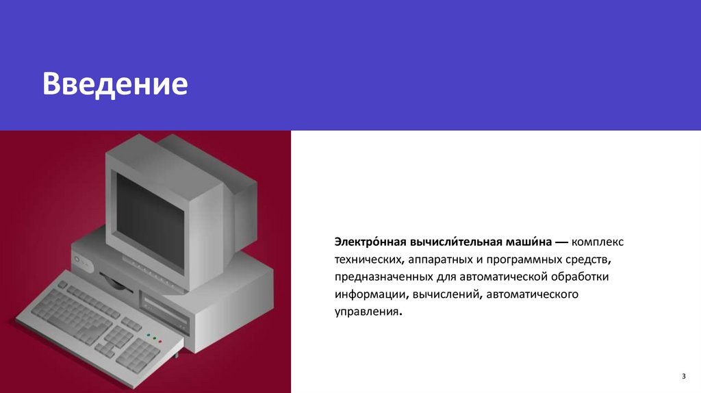 ВведениеЭлектро́нная вычисли́ тельная маши́ на — комплекс