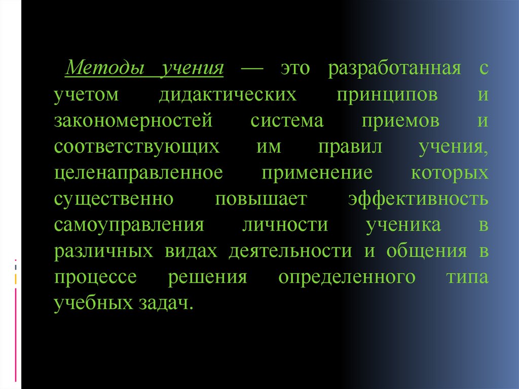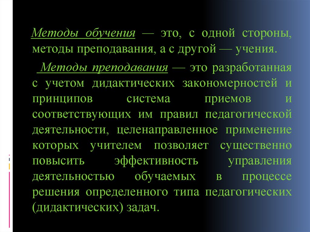 Методы обучения — это, с одной стороны,методы преподавания, а с другой — учения.