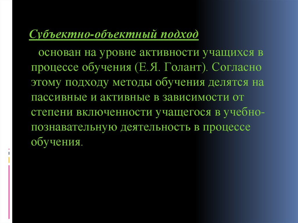 Субъектно-объектный подходоснован на уровне активности учащихся в