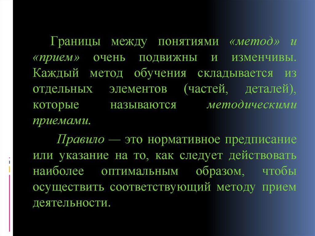 Границы между понятиями «метод» и«прием» очень подвижны и изменчивы.