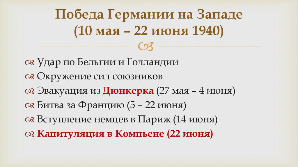Победа Германии на Западе(10 мая – 22 июня 1940)