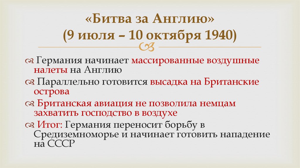 «Битва за Англию»(9 июля – 10 октября 1940)