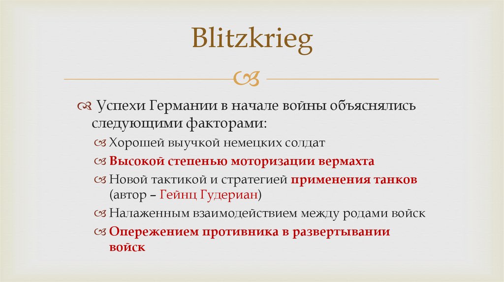 BlitzkriegУспехи Германии в начале войны объяснялись
