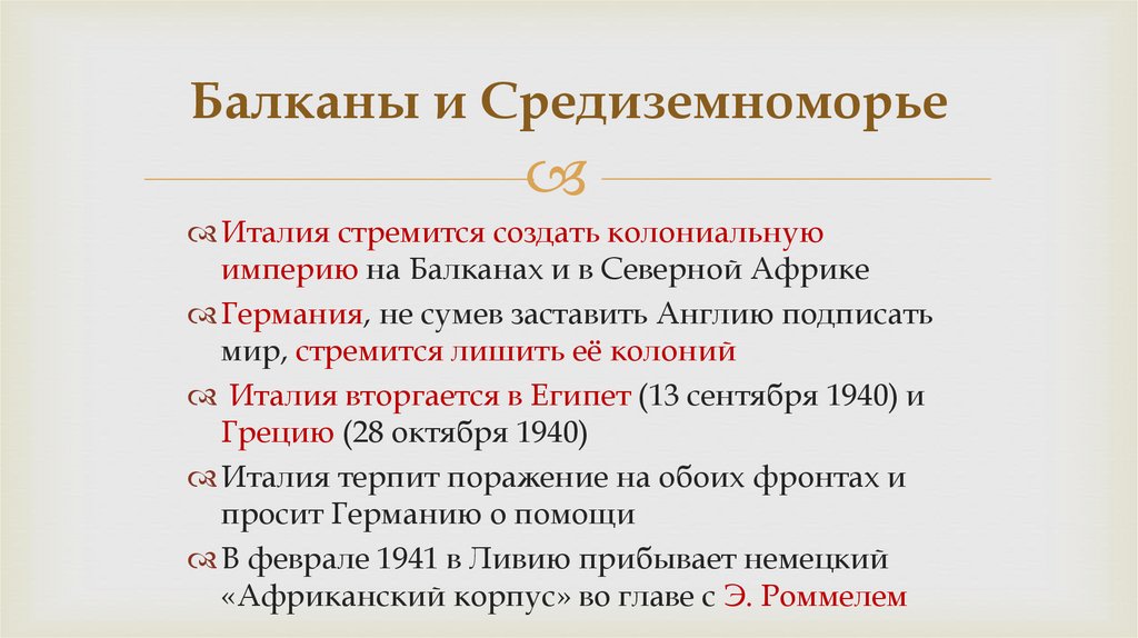 Балканы и СредиземноморьеИталия стремится создать колониальную