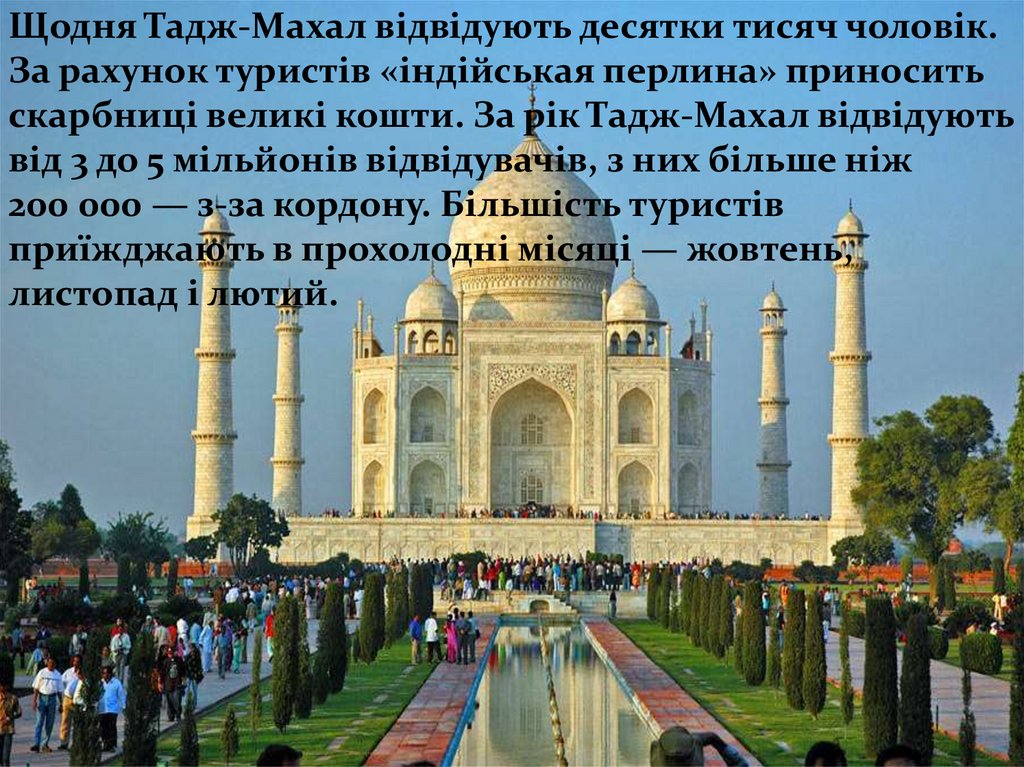 скарбниці великі кошти. За рік Тадж-Махал відвідують