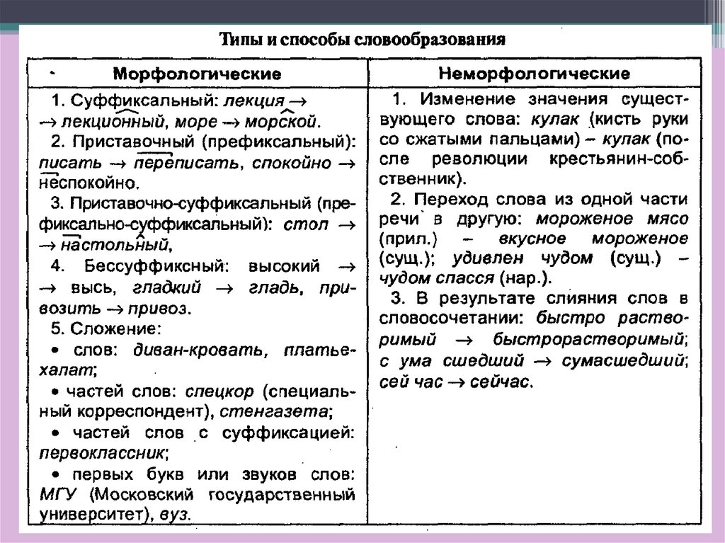 части речи в другую - неморфологический