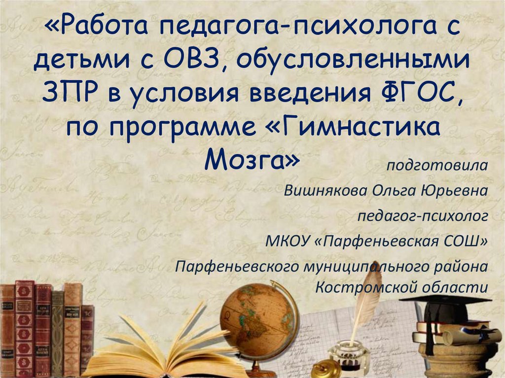 Работа педагога-психолога с детьми с ОВЗ, обусловленными ЗПР в условия введения ФГОС, по программе «Гимнастика мозга»