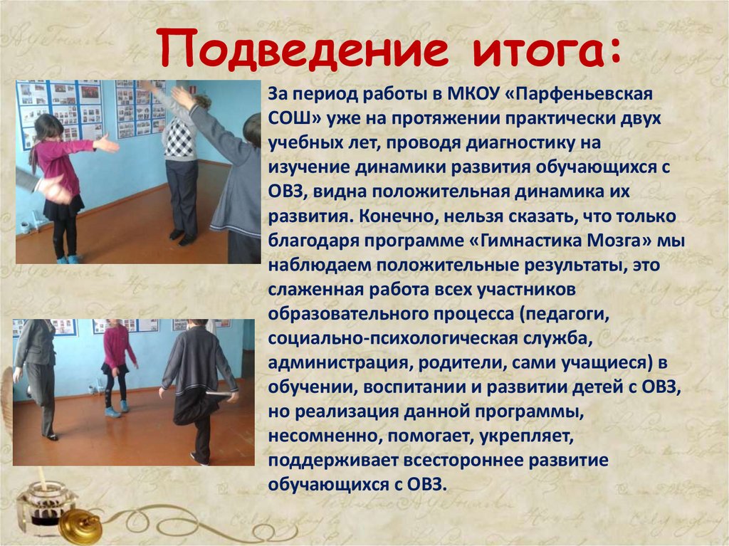 Подведение итога:За период работы в МКОУ «Парфеньевская