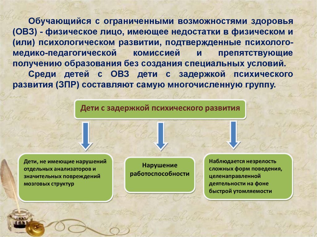 Обучающийся с ограниченными возможностями здоровья(ОВЗ) - физическое лицо, имеющее недостатки в физическом и