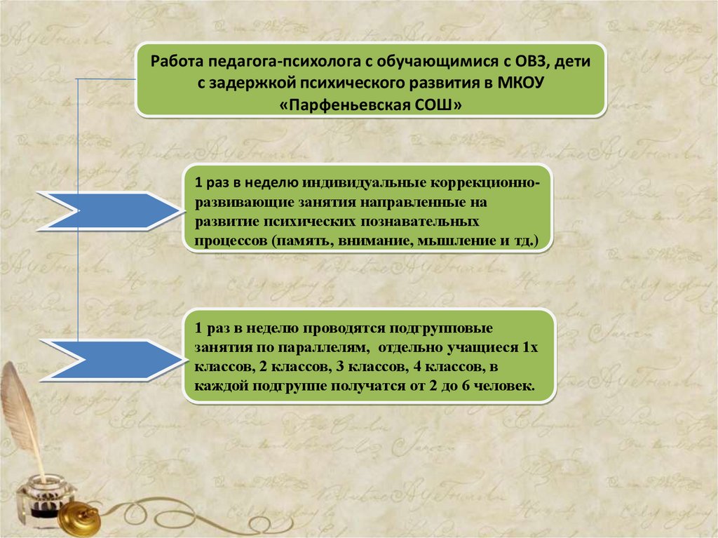 Работа педагога-психолога с обучающимися с ОВЗ, детис задержкой психического развития в МКОУ