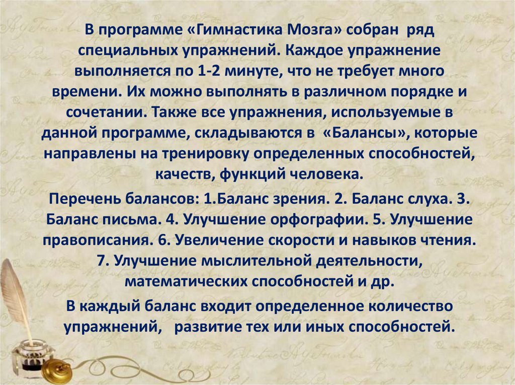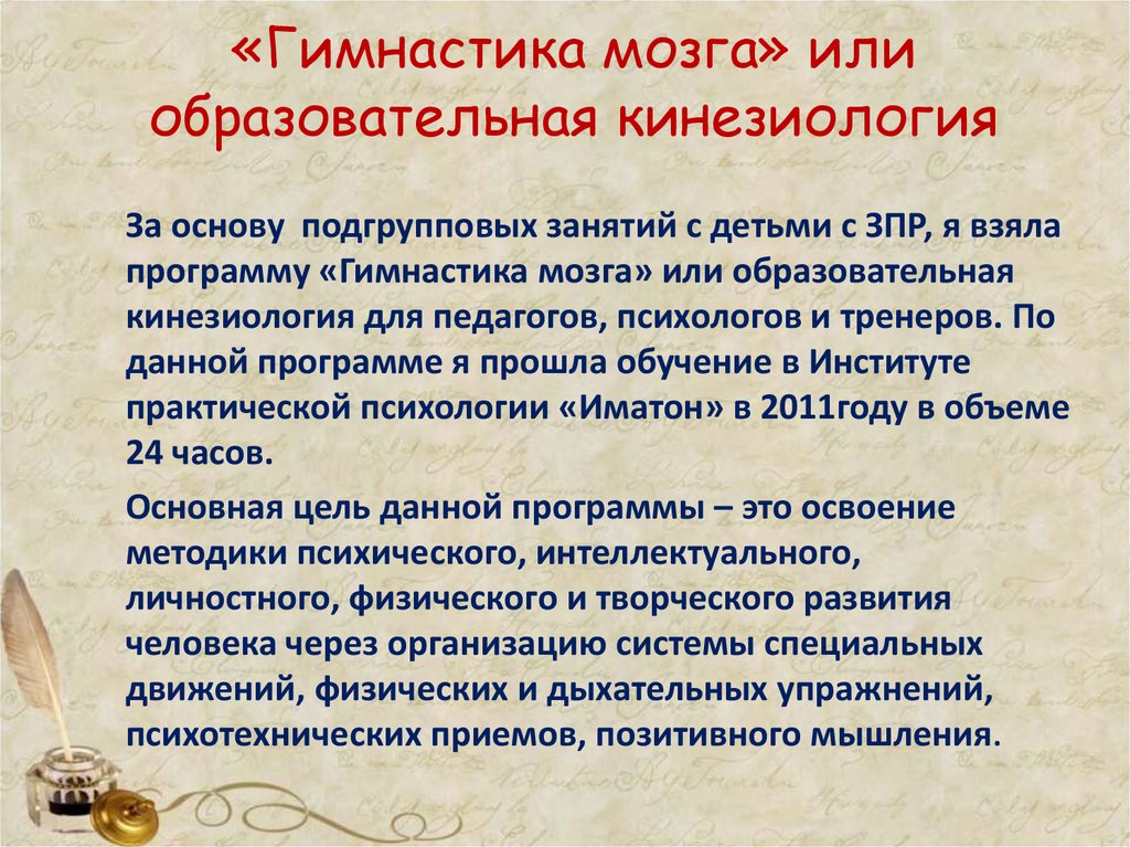 Программа тренинга «Гимнастика Мозга» или образовательная кинезиология для